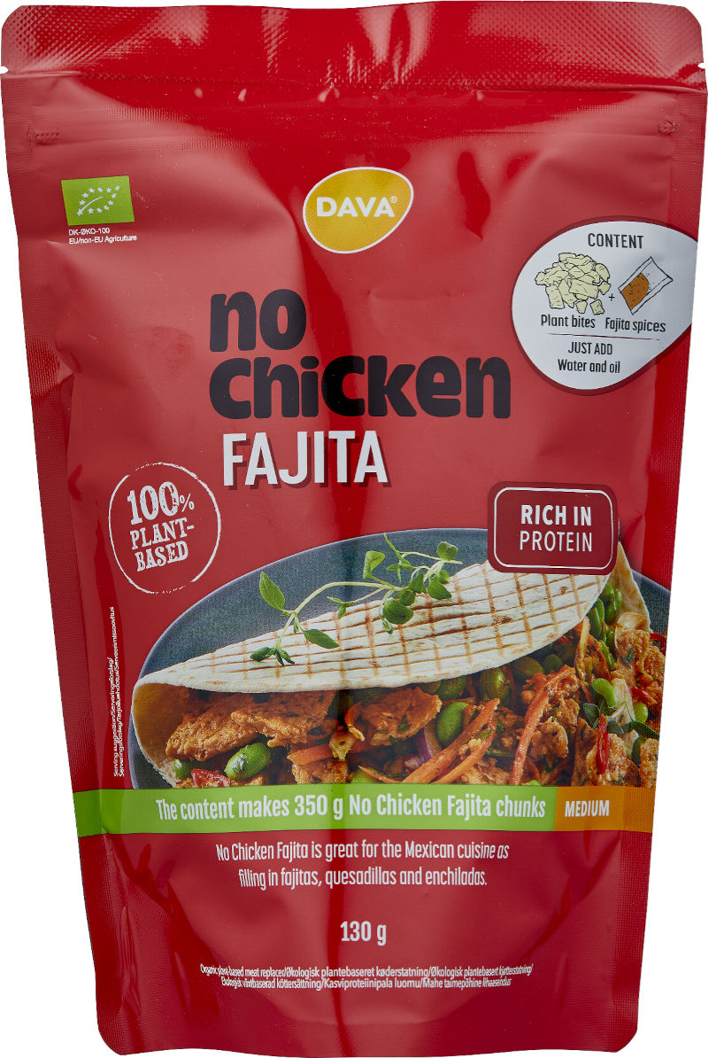 No Chicken Fajita Kasviproteiinipala luomu. Käytä kuten fajita-maustettuja broilerinsuikaleita.